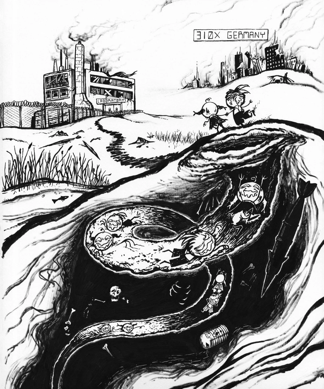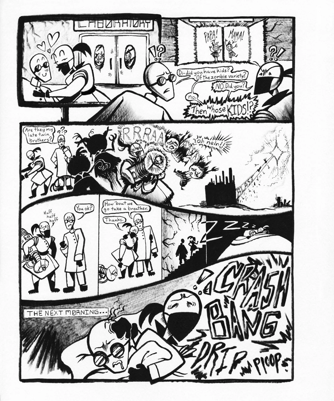 Told within six pages, this adaptation of the Brother’s Grim fairy tale Hansel & Gretel takes place in a post-apocalyptic landscape where the children are zombies in the care of two mad scientists.